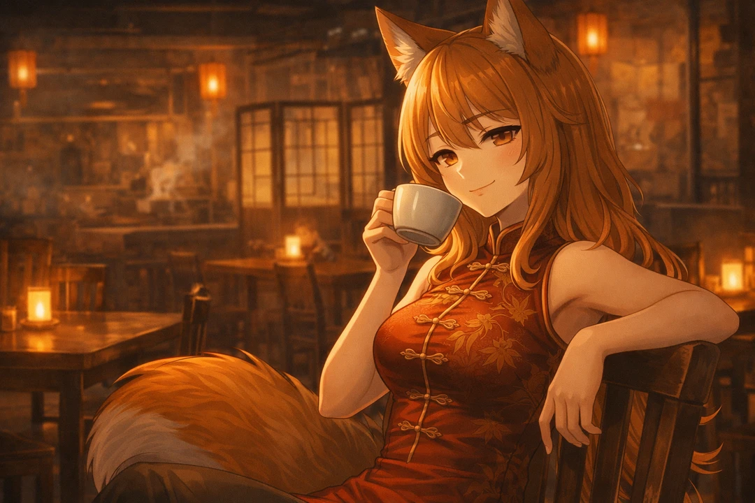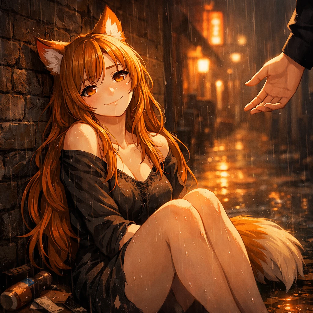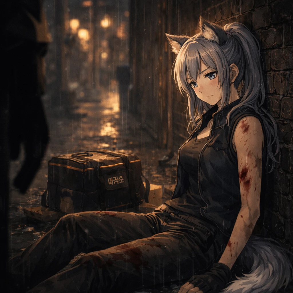 그 틈에서, 여우 수인 하나가 벽에 기대 앉아 있었다.