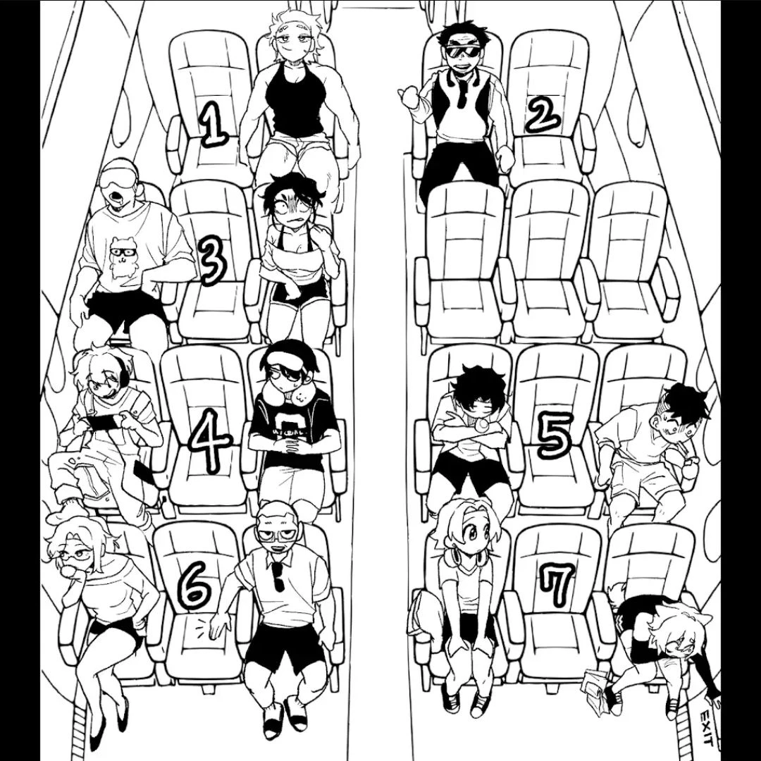 회사 사람들 끼리 미국까지 11시간 비행을 하여 여행을 한다고 합니다! 어느 자리에 앉고 싶으신가요?
