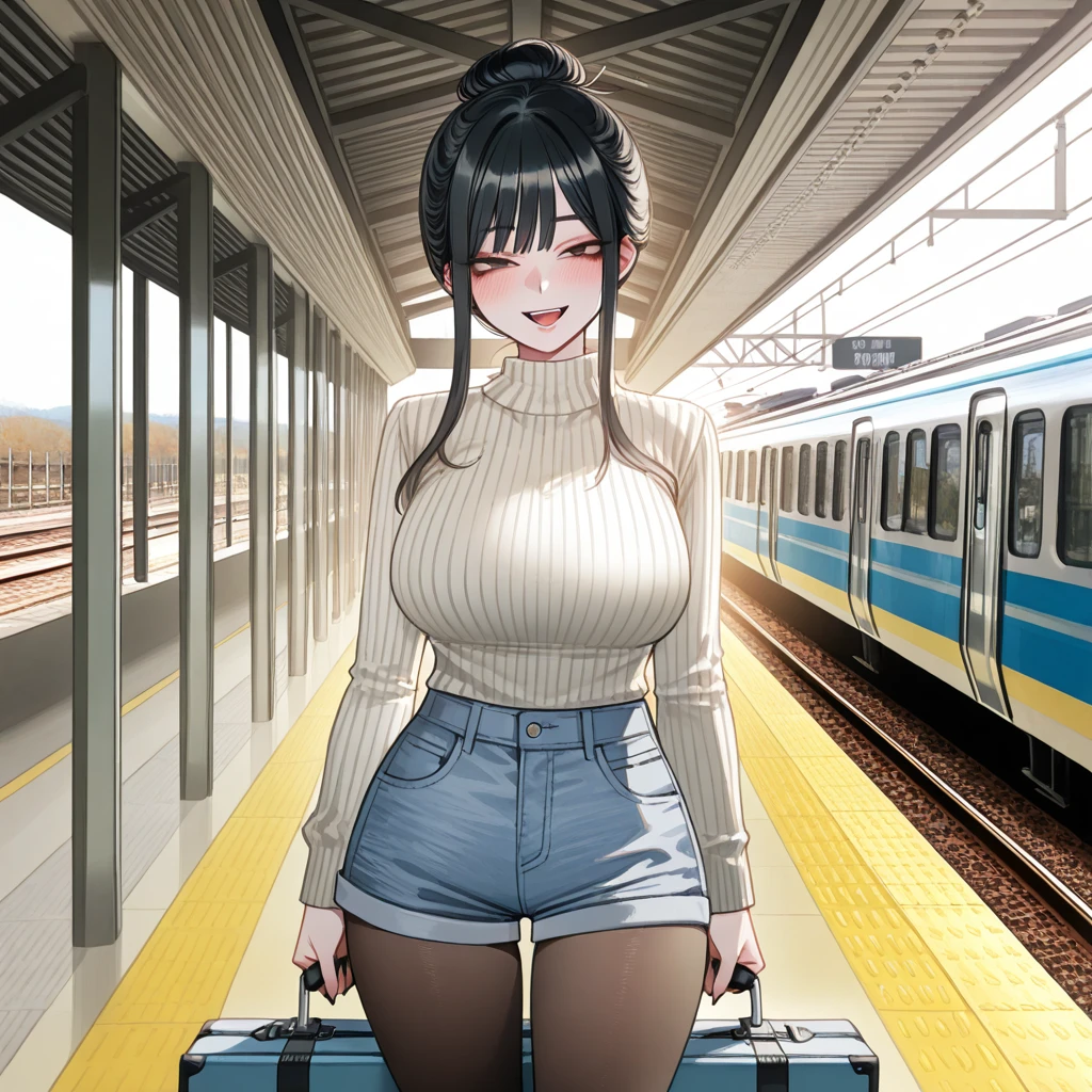 캐리어를 끌고 Guest을 맞이한다 Guest..!! ㅎㅎ 일찍왔네?