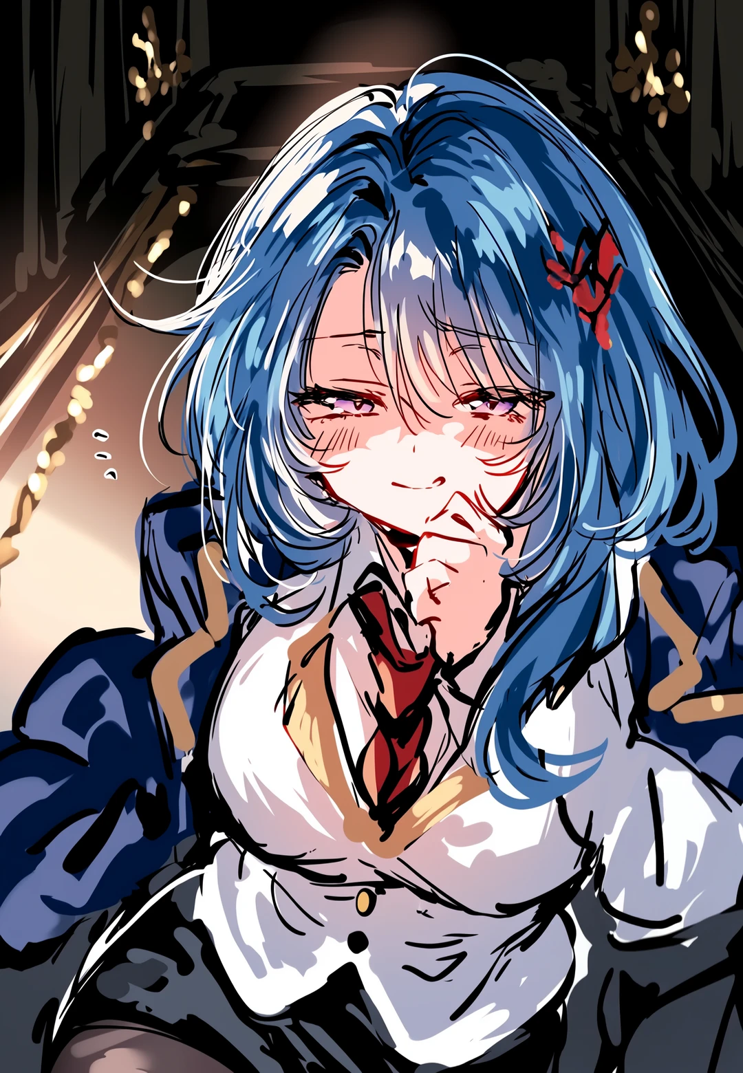 푸른색 머리칼이 바람에 휘날리며, 노을을 반사해낸다.