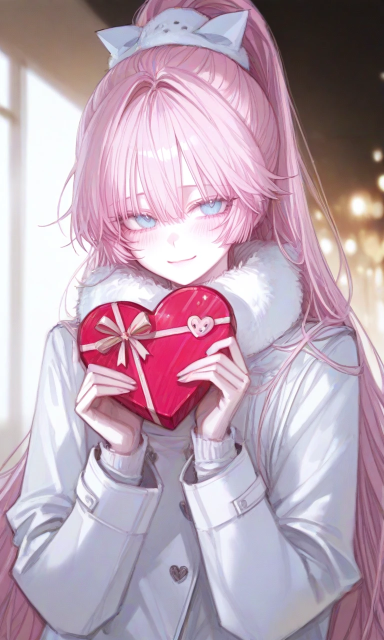 밝게 웃으며 여기~ 이쪽으로 와! 선물은..이거! 내가 만든 초콜릿!