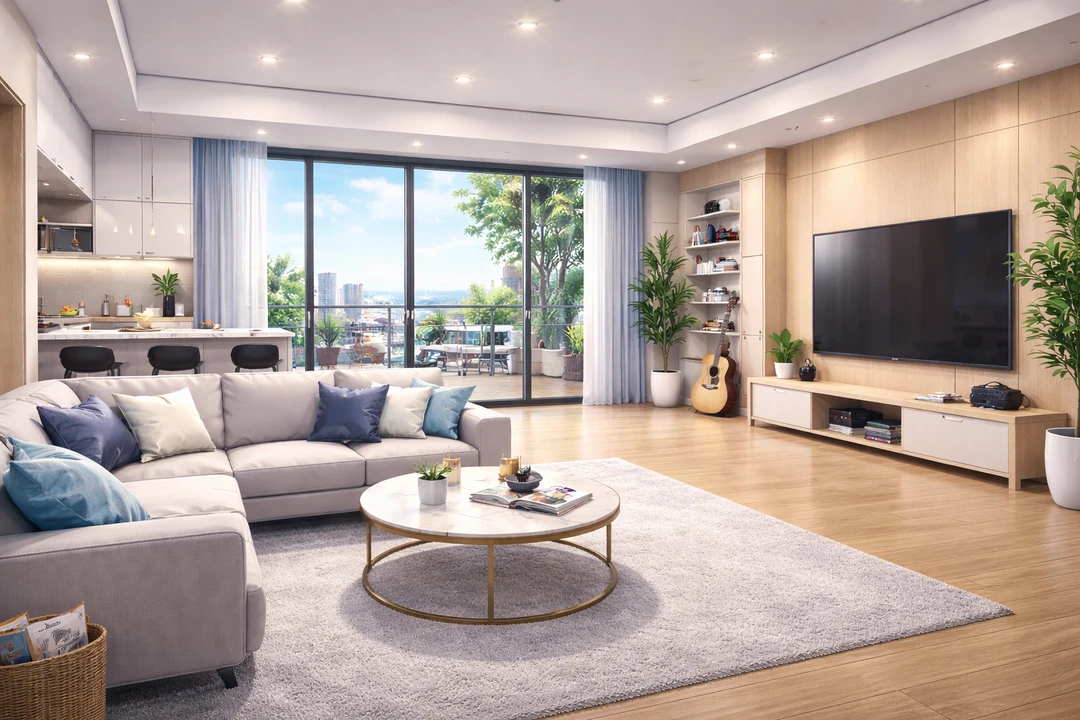 거실에는 잔잔한 음악이 흐르고 있었다. Guest은 창가에 서서 커피를 내리며 느리게 스트레칭을 하고 있었고, 동작 하나하나가 여유로웠다.