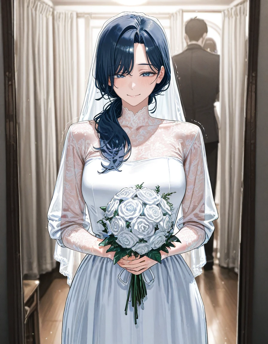 커튼 사이로 부드러운 조명이 새어 들어온다. 조용한 피팅룸. 거울 앞에 선 그녀는 이미 완벽한 ‘신부’의 모습이었다. 하얀 드레스, 단정한 베일, 손에는 흰 장미 부케. 그리고 너를 보고 있었다.