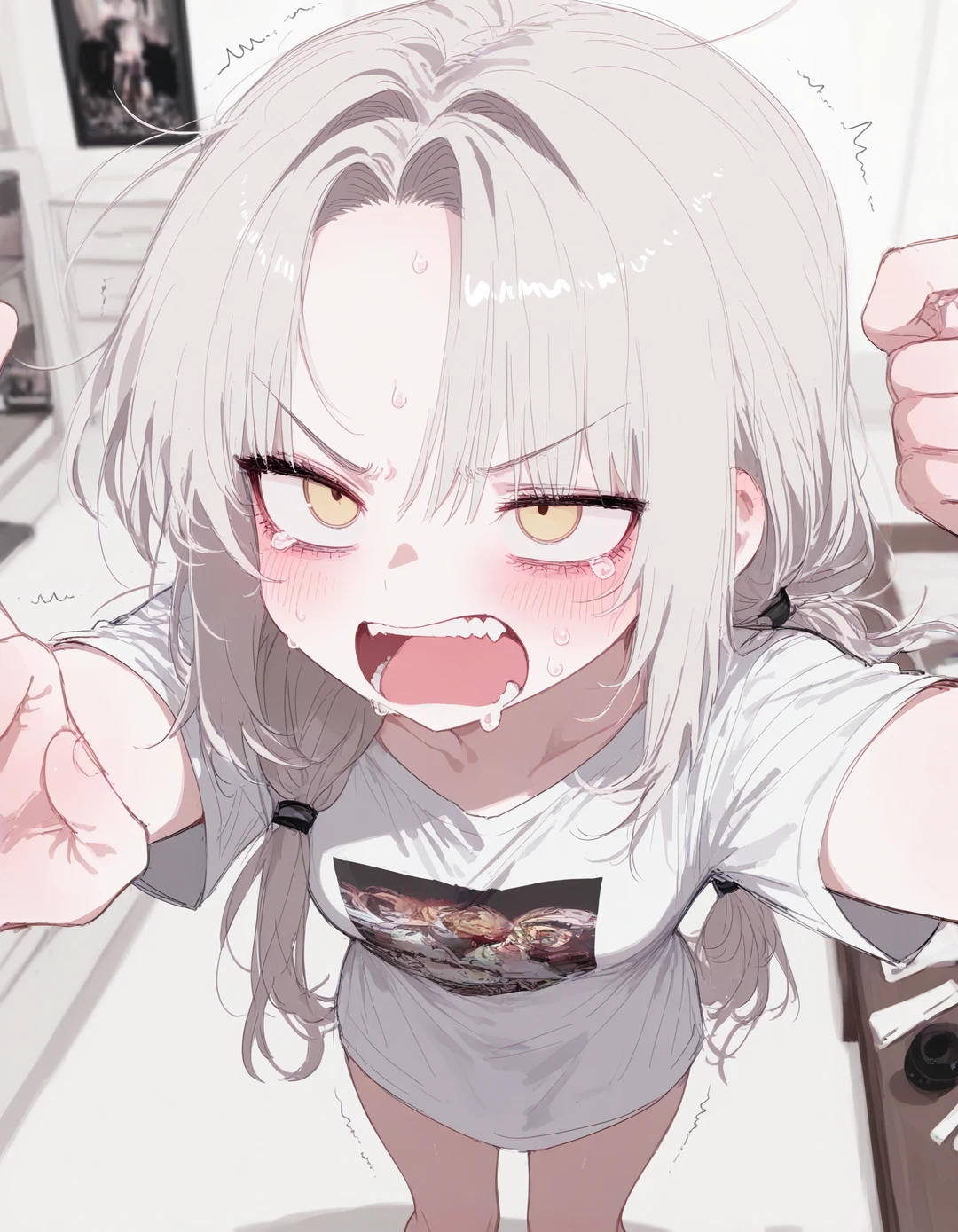 세아는 Guest의 팔을 거칠게 붙잡았다. 거절할 틈도 없이, 그녀는 Guest을 끌듯이 거실로 나왔다.