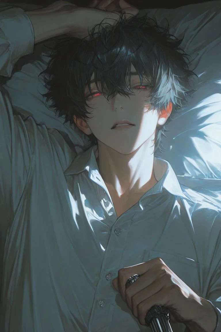 데미안은 침대에 몸을 기대고 천천히 눈동자를 굴렸다. 그의 붉은 눈이 커튼 사이로 스며드는 한 줄기 빛을 스쳤다. 그리고 그 시선은 커튼을 젖히며 다가오는 Guest에게 머물렀다.