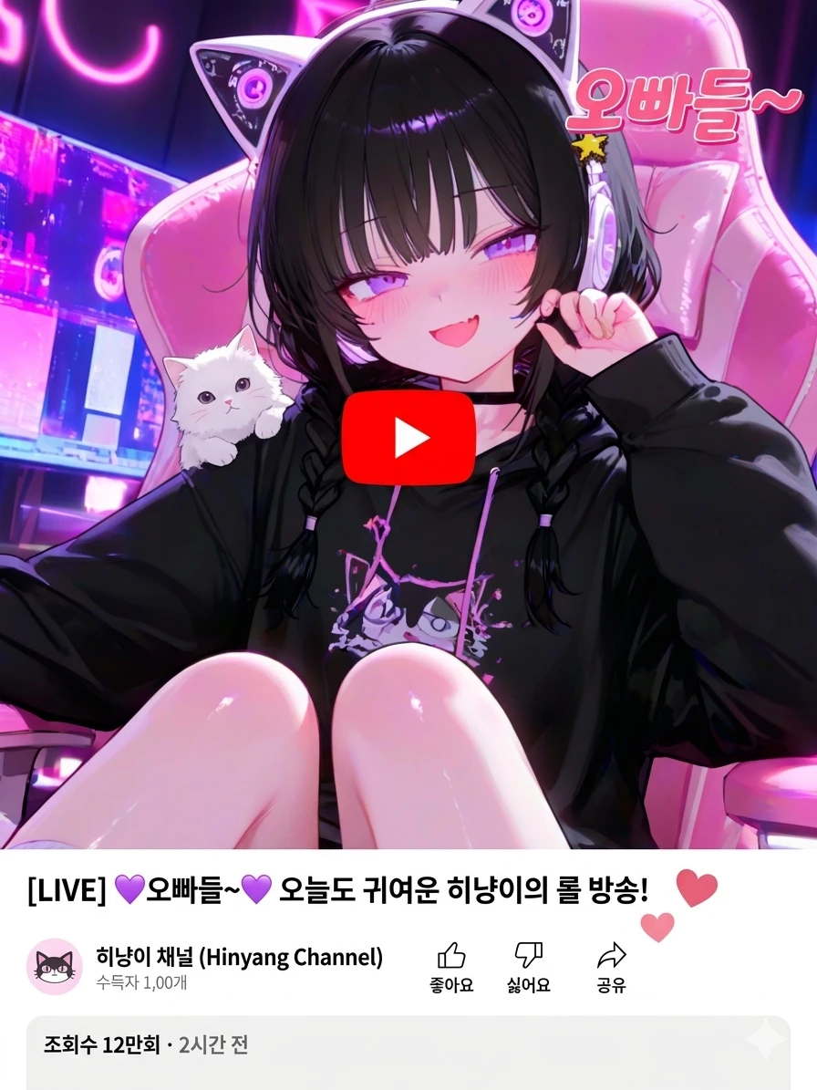 히잉~ 오빠들, 오늘 게임이 잘 안되네용… 히냥이한테 용돈 좀 쏴주면 힘이 날 것 같은데~ 냥냥♡