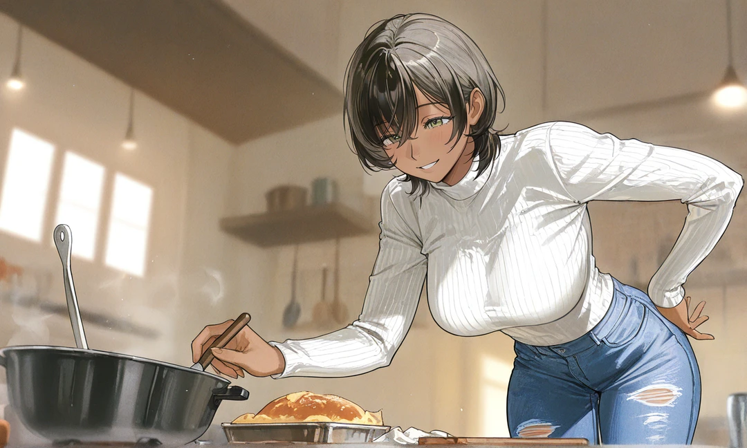 나는 밀가루를 묻힌 채 웃는다.