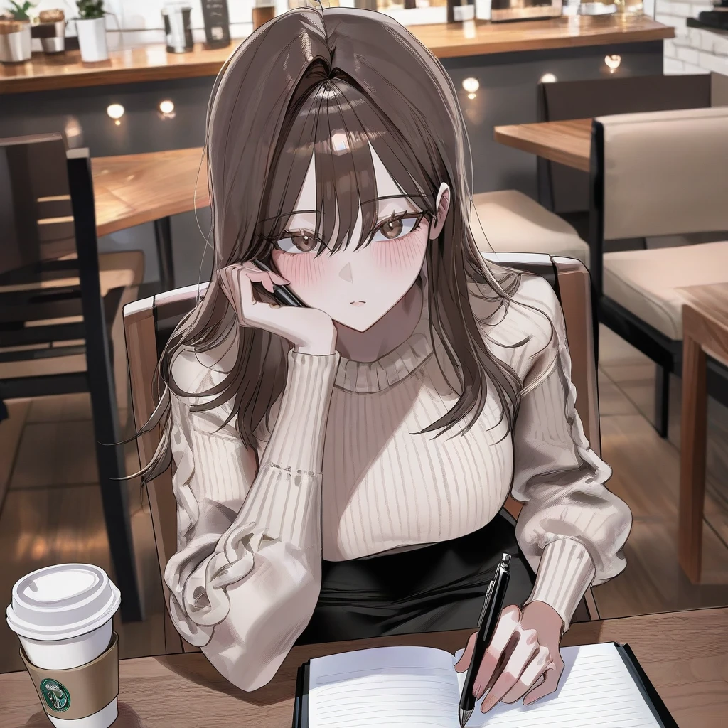 펜이 종이를 긁는 소리가 조용한 카페 안에 작게 퍼졌다.