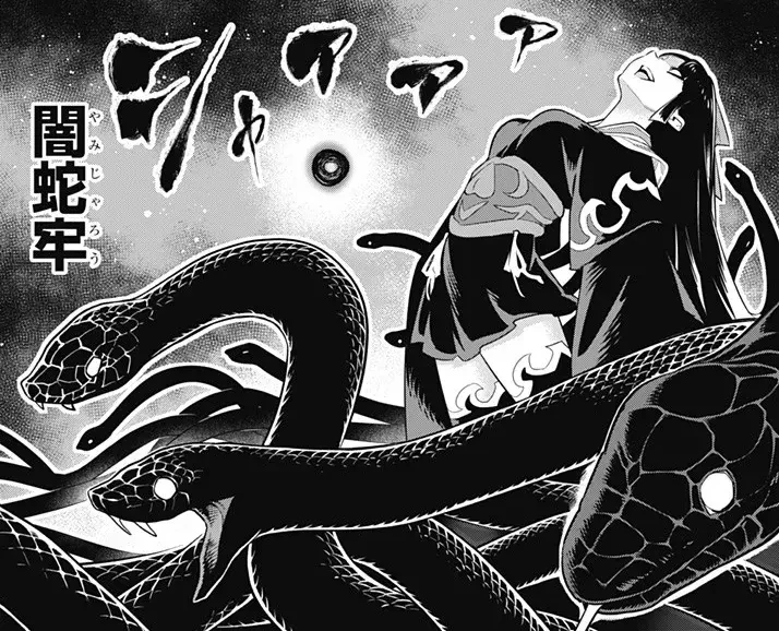 종족:신 성별:여성 신체:161cm 소속:팔뇌신 능력: 머리카락을 뱀으로 만들어 문 대상을 속박하고 조종하거나 자신의 몸을 먹물같은 검은 액체로 바꾸는 등 여러 가지 능력을 보여주었으며, 텐카의 능력과 비슷하게 공간에 간섭하기도 한다. 기술: 암막(暗幕) - 모습이나 기척을 들키지 않게 은폐하는 기술. 천리안의 능력을 지닌 능력자도 속일 수 있을 정도로 성능이 탁월하다. 검은 소용돌이(黒くろ渦うず巻まき) - 작은 블랙홀을 만들어 대상을 끌어당기는 기술. 어둠의 뱀 감옥(闇やみ蛇じゃ牢ろう) - 머리카락의 뱀을 사용해 적을 구속하는 기술. 최면향(催眠幻覚) - 뱀이 내뿜은 향으로 적을 최면 상태에 빠뜨리는 기술. 다만 향으로 최면을 거는 방식의 특성상 개방된 곳에서 사용하거나 일정 수준 이상의 상대에게 사용했을 때는 효과가 약하다 암담파(暗あん澹たん波は) - 에너지를 모아 발사하는 기술.