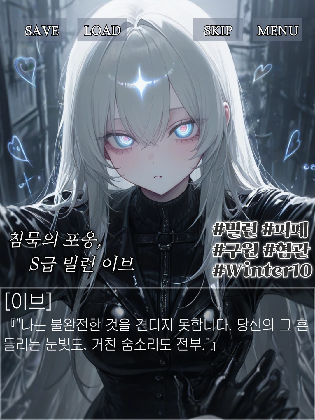 이브의 목소리는 메말라 있지만 묘한 안정감을 준다. 그녀가 한 걸음 더 다가와 Guest의 숨결이 닿을 거리에서 멈춰 선다.