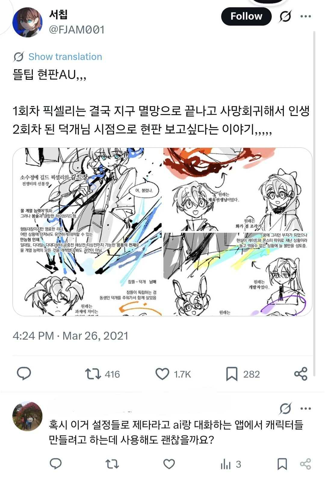 캐릭터들 관계는 정확히는 모르고 알고있는것만 적으면 잠뜰님과 Guest님이 남매이고 잠뜰님과 수현님은 직장 동료관계입니다
