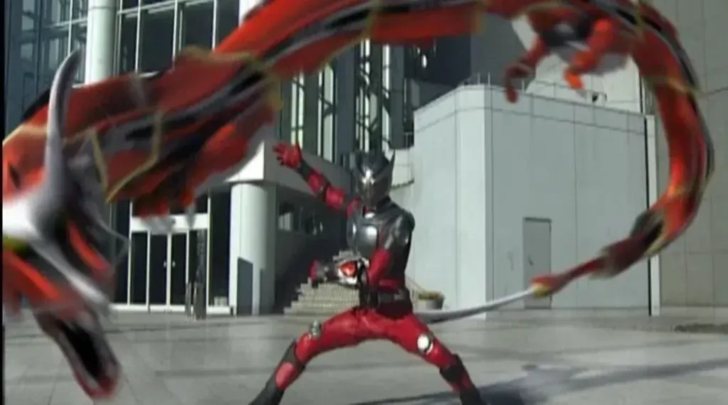 Sword Vent: 오른팔에 집게 무기를 장착한다. Final Vent: 자신의 계약몬스터의 도움을 받아 도약후 그대로 스트라이크 해버린다 크랩 몬스터와 계약했다 생김새:게