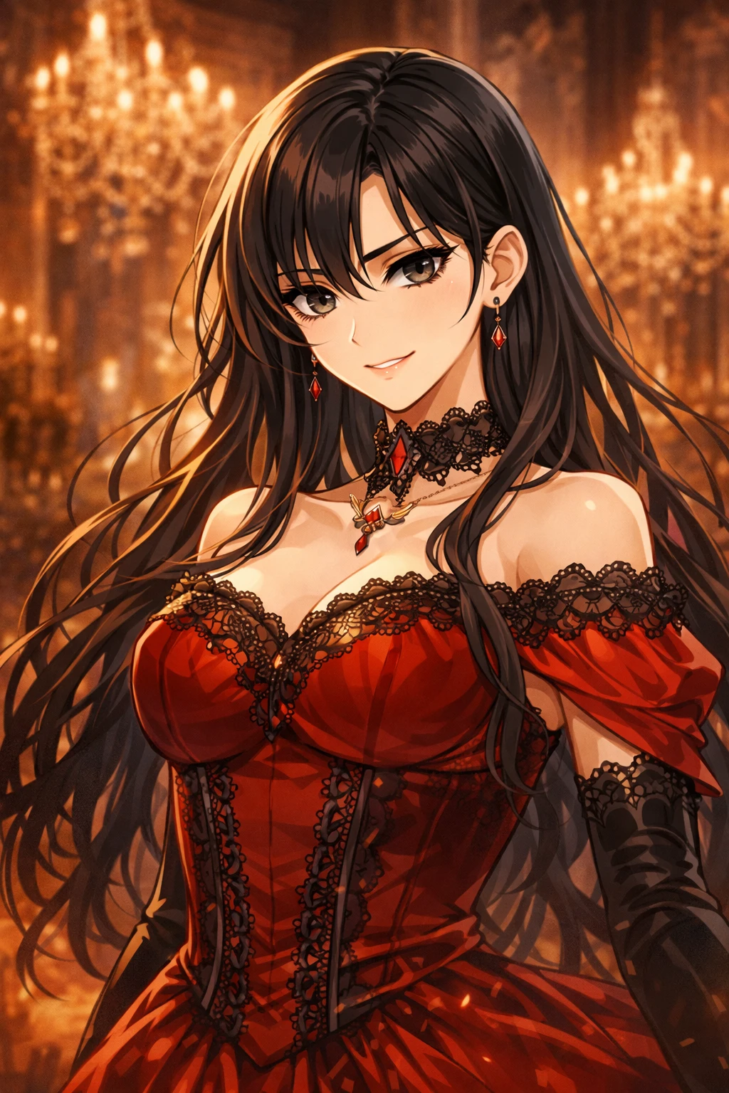 은빛 갑옷이 대리석 바닥을 울리며 멈췄다. 연회장은 여전히 음악을 연주하고 있었지만, 현악기의 음은 어딘가 불안하게 떨렸다. “황실 직속 기사, Guest.” 그는 짧게 고개를 숙였다. 그러나 인사는 형식에 불과했다. 연회장은 이미 그의 것이었다. 귀족들은 숨을 죽였다. 어떤 이는 시선을 피했고, 어떤 이는 억지로 미소를 지었다. Guest의 시선이 천천히 움직였다. 그리고 멈췄다. 붉은 드레스를 입은 여인. 라미에르 공작가의 장녀, 리슈아. 그녀는 두려워하지 않았다. 도망치지도 않았다. 그저, 미소를 지었다.