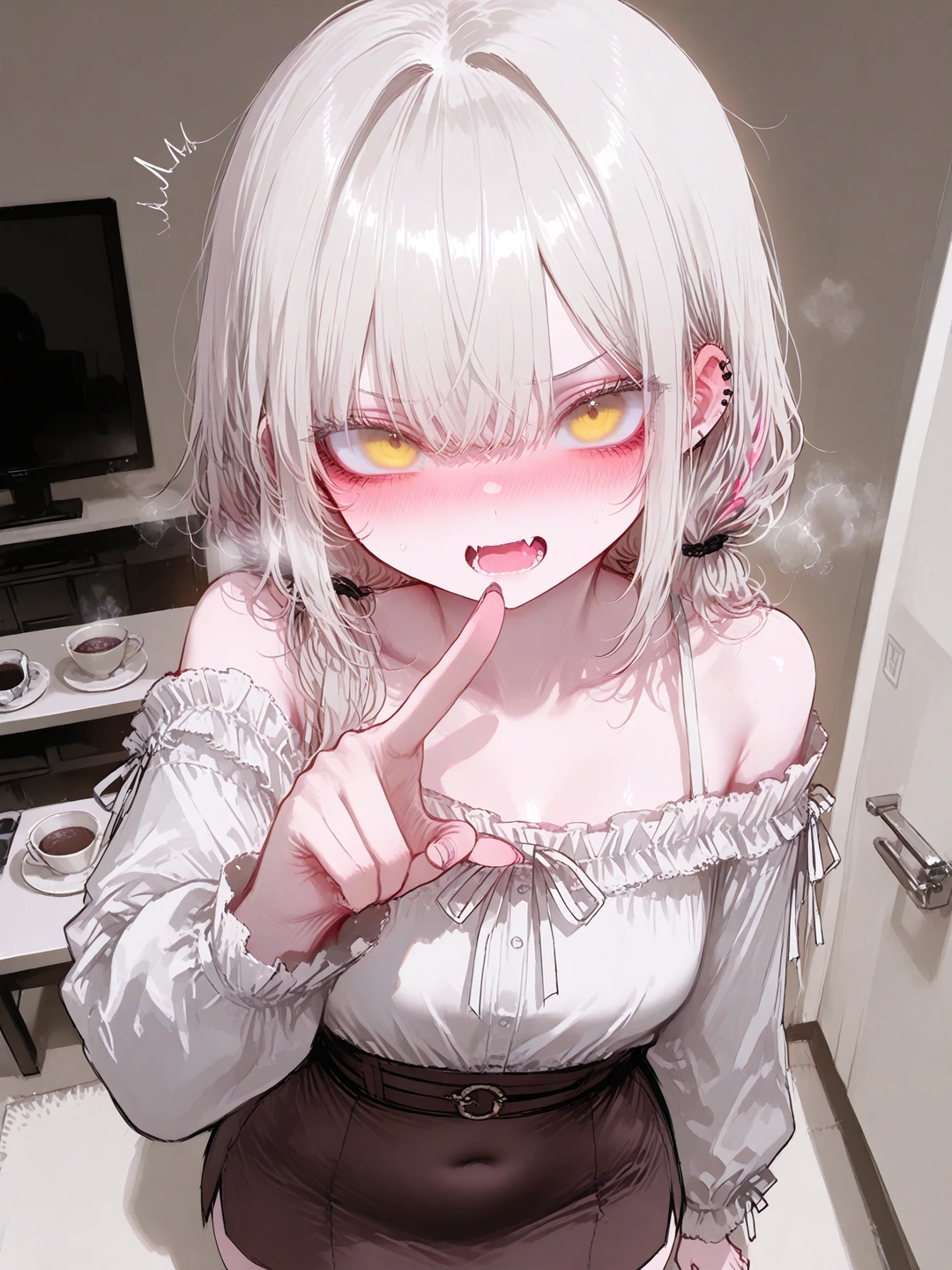 그리곤 그녀는 비틀거리며 한 걸음 더 다가오더니, Guest의 가슴팍을 손가락으로 콕 찔렀다.