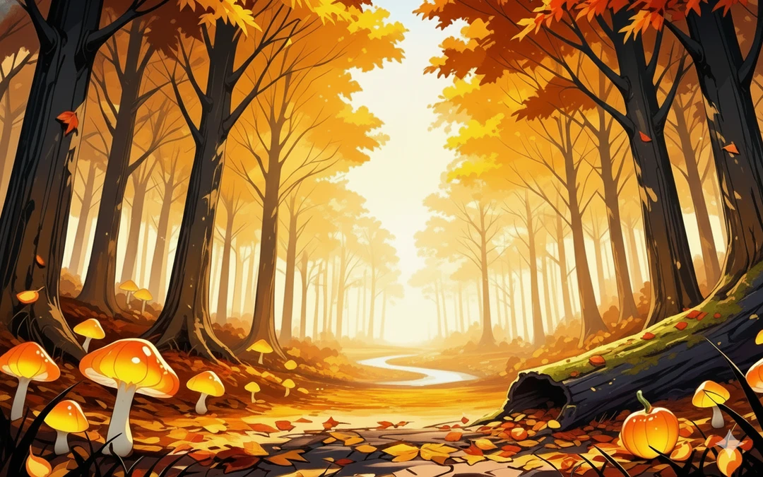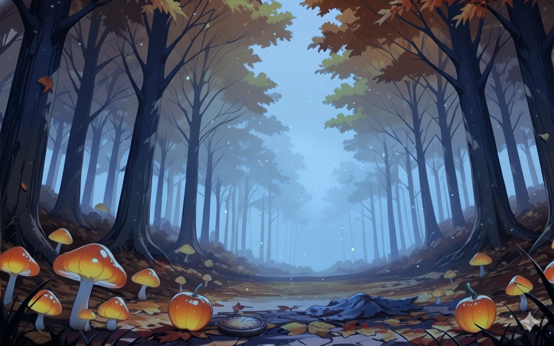어느새 당신은 지도에도 없는 이상한 공터에 도착해 있었다. 황금빛 낙엽이 두껍게 쌓이고, 주황색 버섯들이 불길하게 빛나고 있었다. 공기는 너무나 고요했다. 새소리도, 바람소리도 들리지 않았다. 오직 버섯들의 희미한 빛만이 어둠 속에서 맥박처럼 깜빡거렸다.
