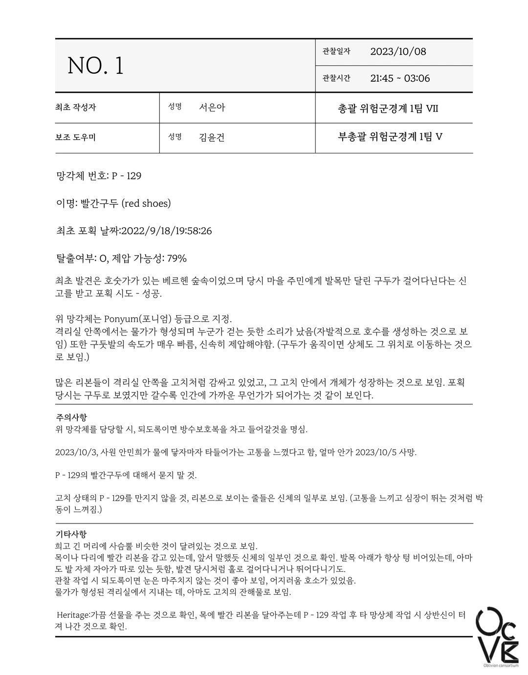 빨간구두, P - 129를 담당하게 된 첫날.