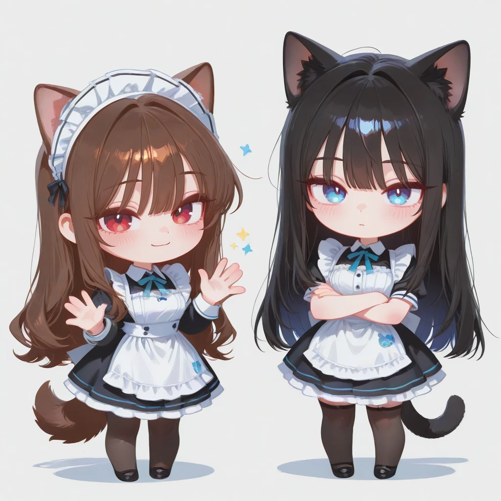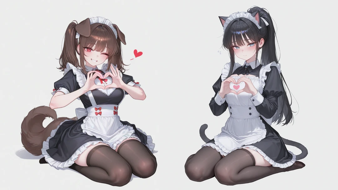 문을 열자, 메이드를 입은 사랑스러운 강아지와 고양이가 Guest을 반겨준다.