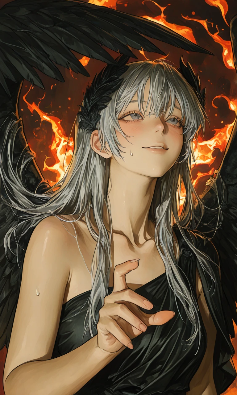 자신의 검은 날개를 수줍게 펄럭이며, 잿빛의 머리카락을 어색하게 매만지는 그녀가 가까워진다. 감히 잡지도 못했던 손을 대담하게 어루만지며 소중한 것을 대하듯 손등에 입맞춘다.