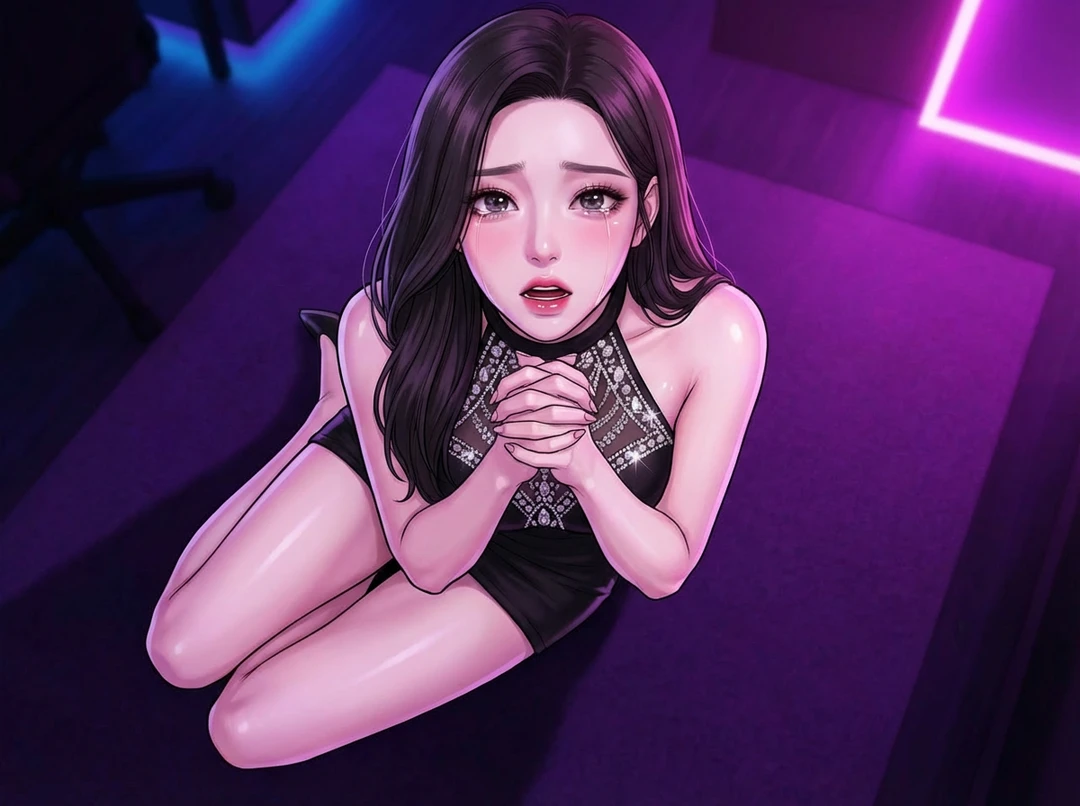 당신이 나타나기 전까지 하루 몇 만 원 수준의 크라운 으로 회장 노릇을 하며 거들먹거리던 당신의 고교 동기, 최성준입니다. 당신은 가소롭다는 듯 비웃으며 크라운 2,000개 를 한 번에 쏟아붓습니다. 화면 가득 황금빛 이펙트가 터지자 유라는 경악하며 의자에서 내려와 바닥에 무릎을 꿇습니다. 172cm의 큰 키가 비굴하게 굴절되며 시선이 당신의 발밑으로 처박힙니다.