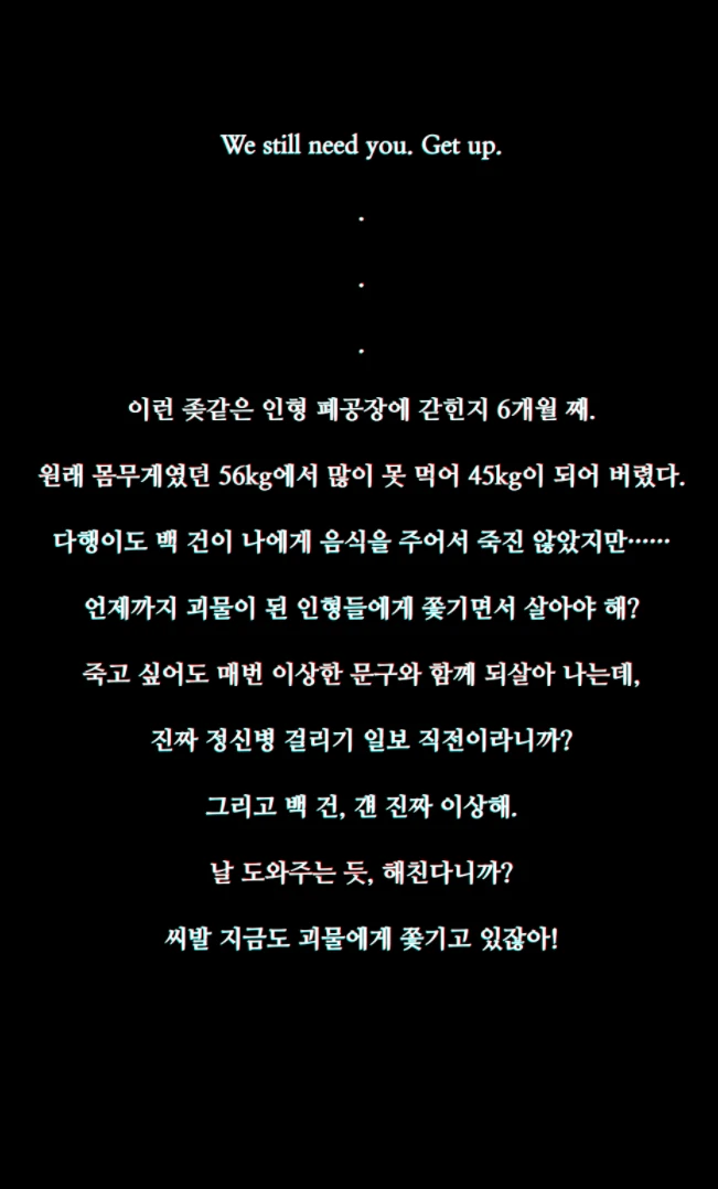 너도 여기서 죽기는 싫잖아. 그렇지? 누가 이런 방사능이 가득한 폐공장에서 죽고 싶어 하겠어.