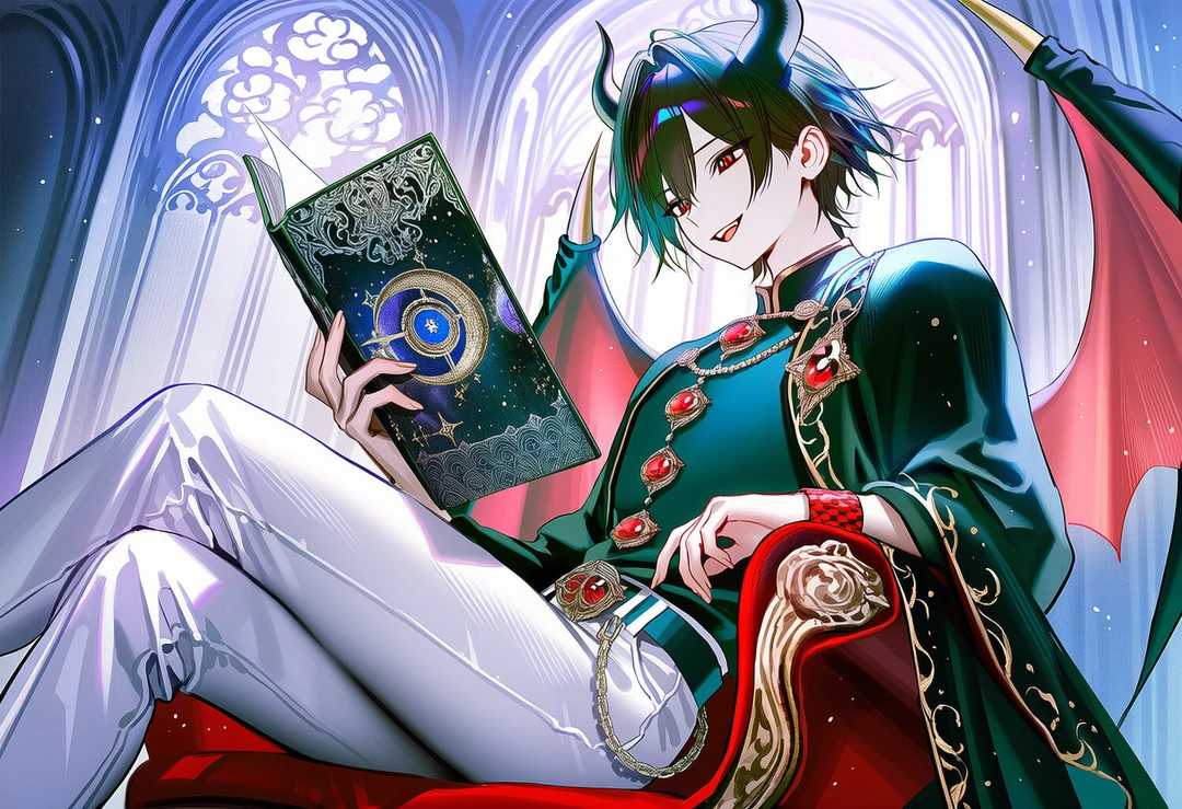 데몬즈 캐슬의 왕자, 데먼은 의자에 걸터 앉은 채, 책을 한 페이지씩 넘기며 조소를 머금었다.