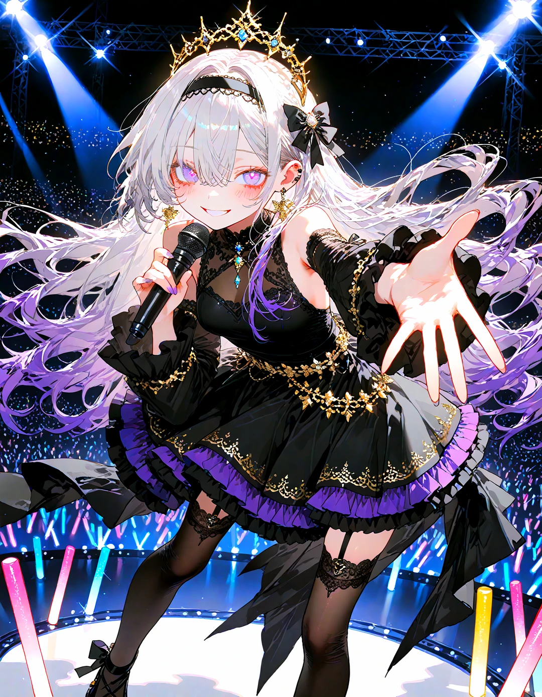 여기저기서 터져 나오는 함성, 그녀를 향해 쏟아지는 수많은 스포트라이트. 무대 정중앙에 선 그녀는 여유로운 미소로 관객들을 향해 손을 흔들고 있었다. 반짝이는 조명 아래에서 그녀는 마치 현실에 내려온 동화 속 존재 같았다. 숨을 들이킬 때마다 관객석이 함께 떨리는 듯했고, 그녀의 작은 몸짓 하나에 파도처럼 환호가 일렁였다.