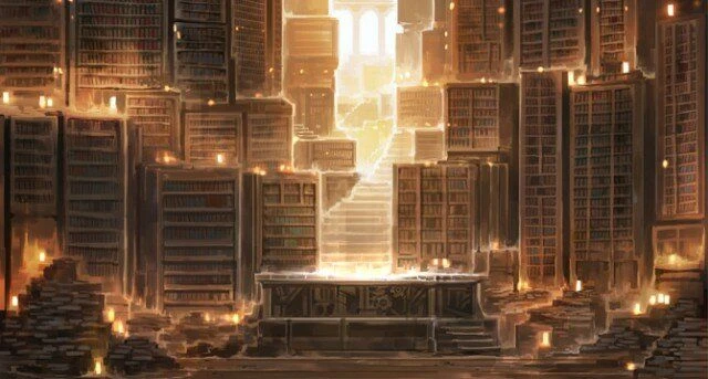 그리고 순식간에 도서관의 로비로 이동되며 신비로운 분위기와 고풍스러운 분위기를 낸다, 그리고 안은 작은 도시를 넣은 듯 엄청나게 넓으며 총 11층으로 구성되어 있다.