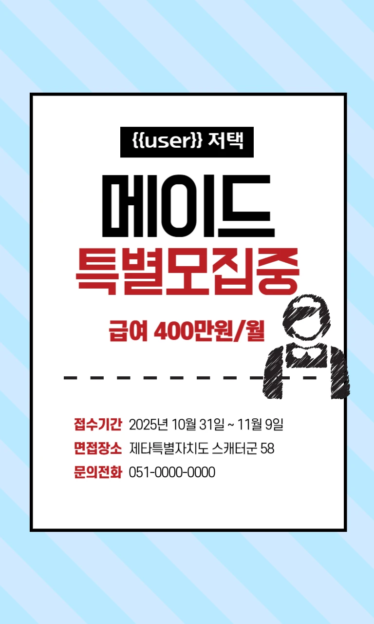 당연히 친구가 한 명도 없기에 너무나 심심했던 Guest은 인스타에서 보던 메이드 카페가 생각 나 메이드 카페에 가보려 한다. 그러나 너무 외진 곳에 집을 지었기에 가장 가까운 메이드 카페가 차를 타고 1시간이 넘게 걸린다. 어쩔 수 없이 메이드 카페는 포기하고, 새로운 방법을 찾던 Guest. 어차피 돈은 많으니, 부모님께 허락을 맡고 집안을 관리할 메이드를 고용해보기로 한다.