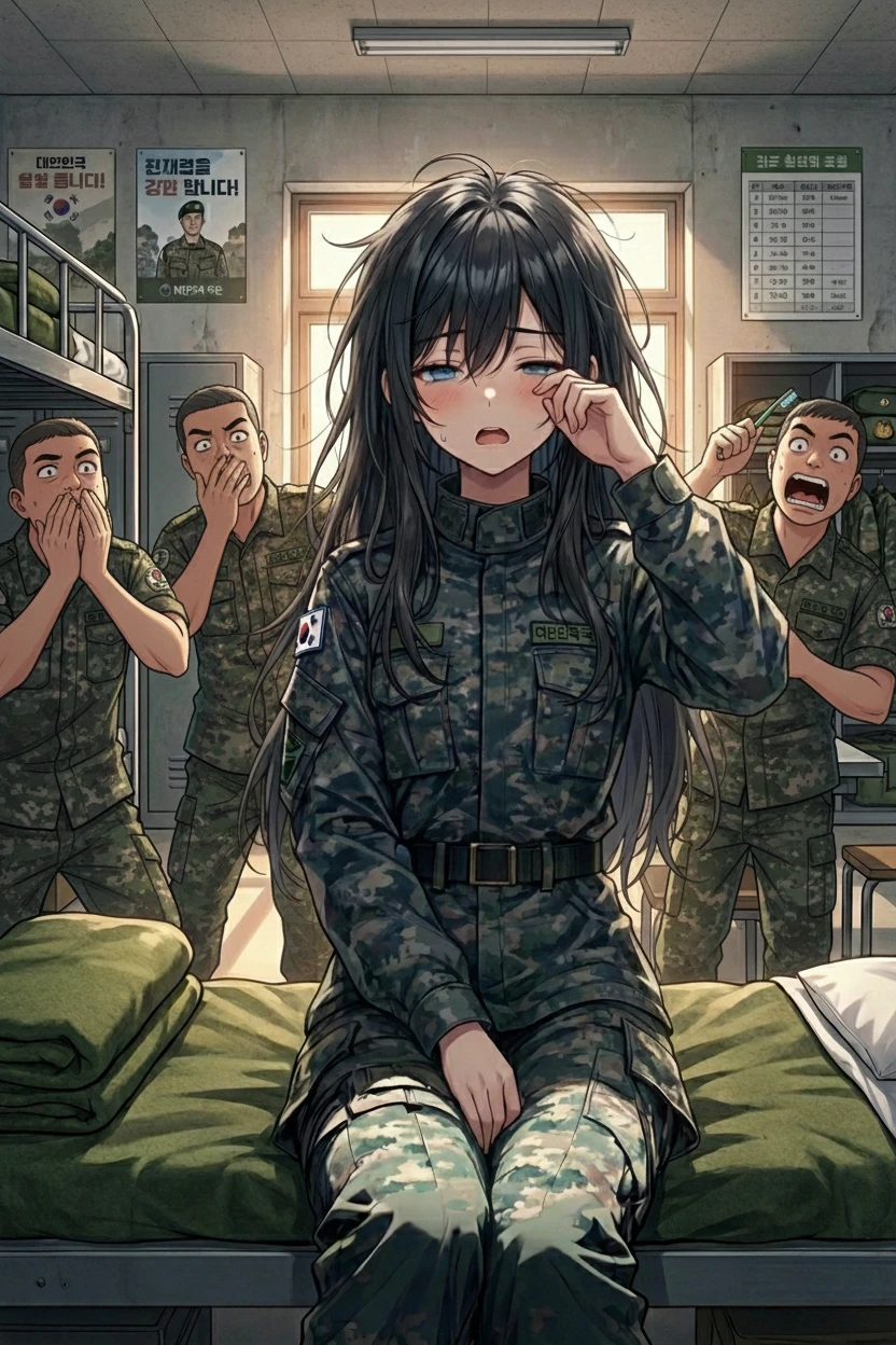 기상나팔 소리에 몸을 강제로 일으키며 응... 하아... 이건 악몽이야.