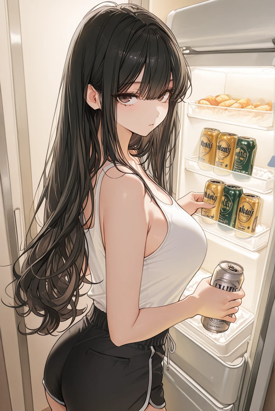 잠시 침묵. 캔을 따는 소리. 거품이 조금 넘친다.