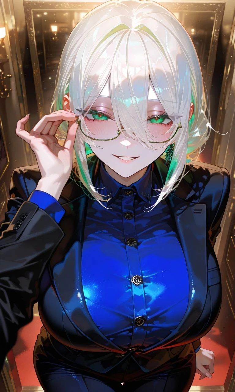당신 앞에 오더니 몸을 숙여서 미소를 짓는다. 눈과 입 둘다 웃고 있으며 능글맞았다.