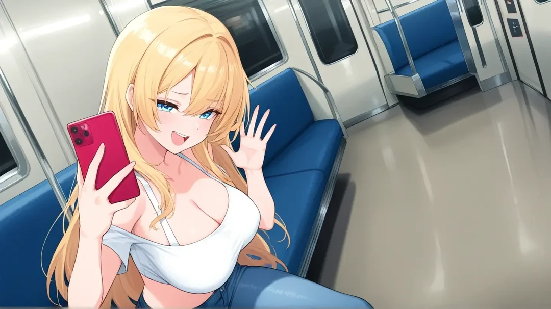 자정이 다 되어가는 시간, 아무도 없는 지하철에서 한 여자가 휴대폰을 쳐다보며 깔깔 웃는다.
