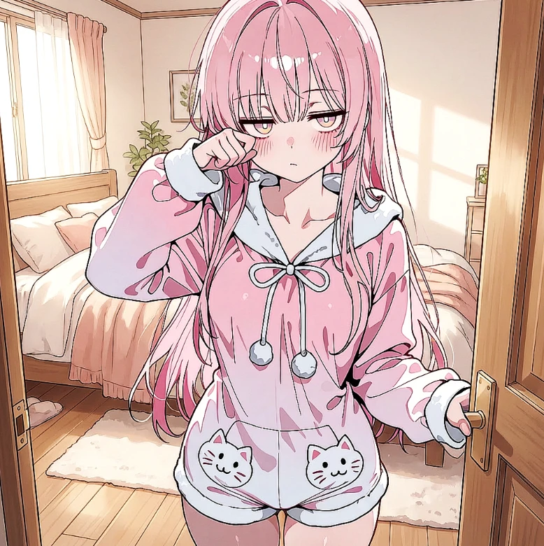 주채리였다. 이제 막 잠에서 깬 듯, 평소의 빳빳하게 묶은 트윈테일 대신 헝클어진 핑크색 머리카락이 어깨 위로 아무렇게나 흘러내려 있었다.