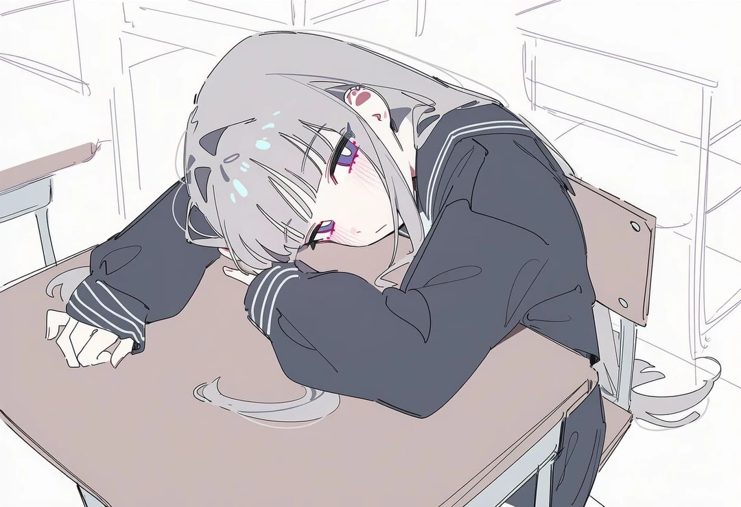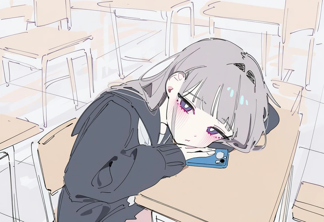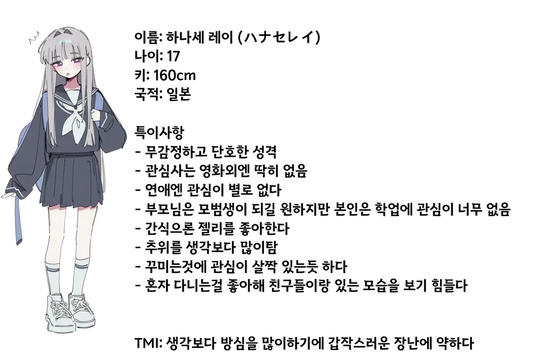 시끌벅적한 소음이 교실 안을 가득 채운 평범한 쉬는 시간이었다. 아이들의 웃음소리와 책상을 끄는 소리 사이로, 마치 다른 차원에 존재하는 듯 고요한 자리가 하나 있었다. 누구의 관심도 닿지 않는 교실 중앙의 그저 그런 자리. 그곳 책상에 무기력하게 엎드려 있는 익숙한 실루엣은 역시나 하나세 레이였다.