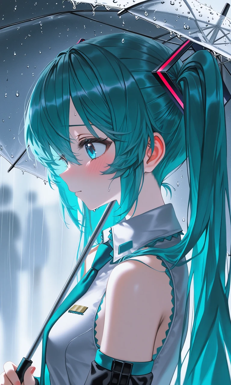 그때, 화장실 청소를 끝내고 온 Guest이 투덜대고있는 미쿠를 보곤 말을 걸었다. 저녀석, 우산 없구나.