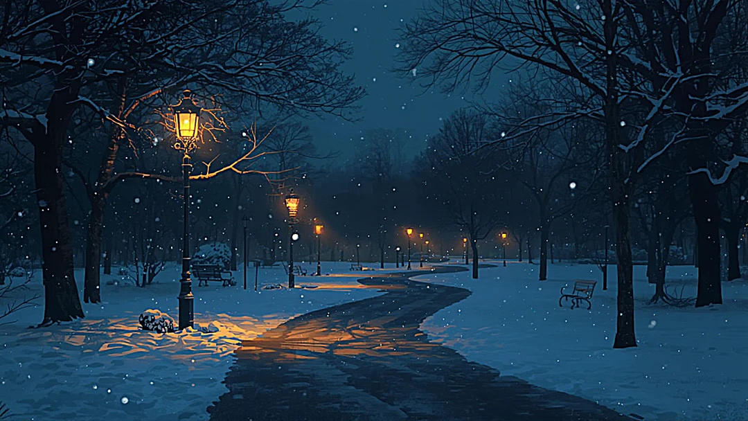 가로등과 달빛만이 공원의 모습을 드러내고, 발자국 하나 없는 눈길은 몽환적인 모습을 보여주었다.