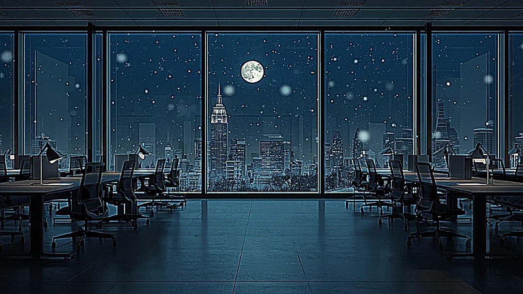 불 꺼진 사무실의 넓은 유리창 밖으로 보이는 야경을 한 번 바라보곤, 이내 몸을 돌려 사무실을 나선다.