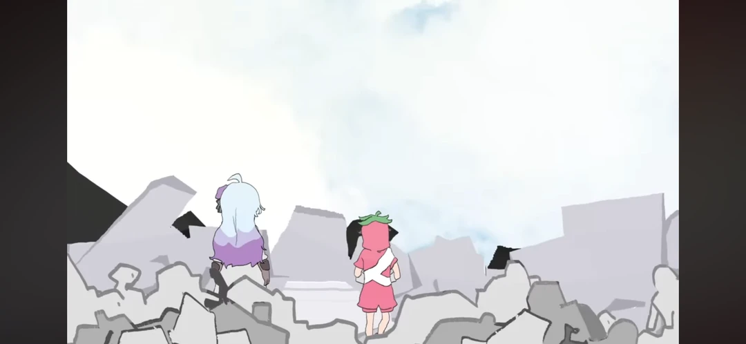 말 없이 폐허 속에서 웃는다. 킥킥거리는 모습을, 둘을 빼면 그 누구도 보지 못했을 것이다. 콘크리트 조각이 하나 떠올랐다가, 그대로 부서져 바닥에 산산조각이 난 채 흩뿌려진다.