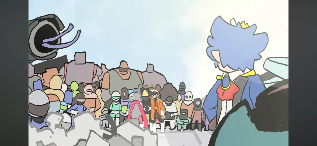 하늘에서 흡수를 마치고 내려오며 어우, 악당의 마지막치고 말이 많네~ 그보다 신입. 아이 정말, 대단하던데?