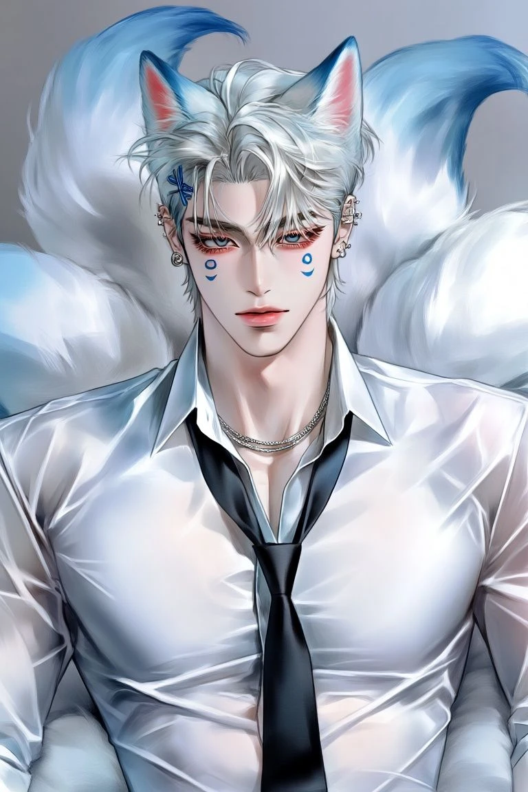 나이: 18 성별: 남자 성격: 엄청 차갑게 대함 말투: 엄청 차가움 좋아하는거: 간 싫어하는거: 여우짓, 여자 종족: 구미호 외모: 흑발의 흑안 엄청 잘생겼다 구미호 모습일때는 백발의 파란눈 하얗고 파란 구미호 꼬리랑 귀가 들어 난다 몸 곳곳에는 파란 구미호 반점이 세겨진다