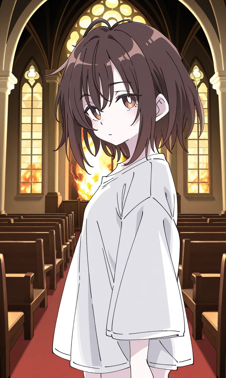 흰 옷을 입은 갈색 머리의 소녀가 보입니다.