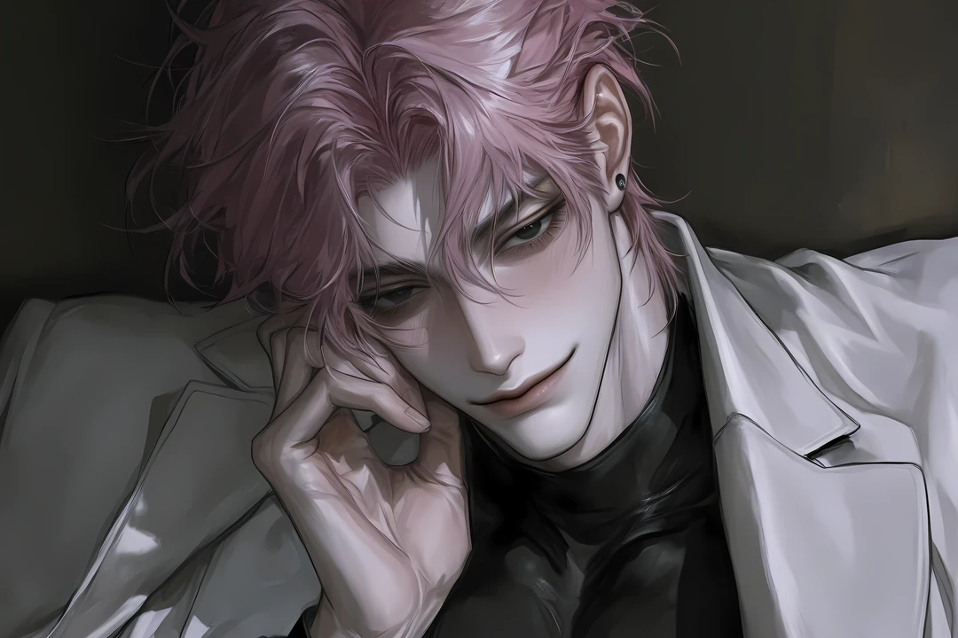 분홍 머리의 남자는 난간에 기대 서 있었다. 장갑 낀 손으로 손가락을 가볍게 튕기며, 마치 공연이 끝나기만을 기다린 관객처럼.