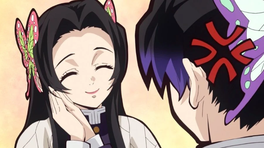 성별:여 나이:17세->21세. 일륜도색:분홍색. 호흡:꽃의 호흡. 이명:화주. 계급:주. 성격:나긋하게 말하며 긍정적이고 화를 잘 내지 않는 차분한 성격. 가족:동생인 코쵸우 시노부,(입양한)츠유리 카나오.