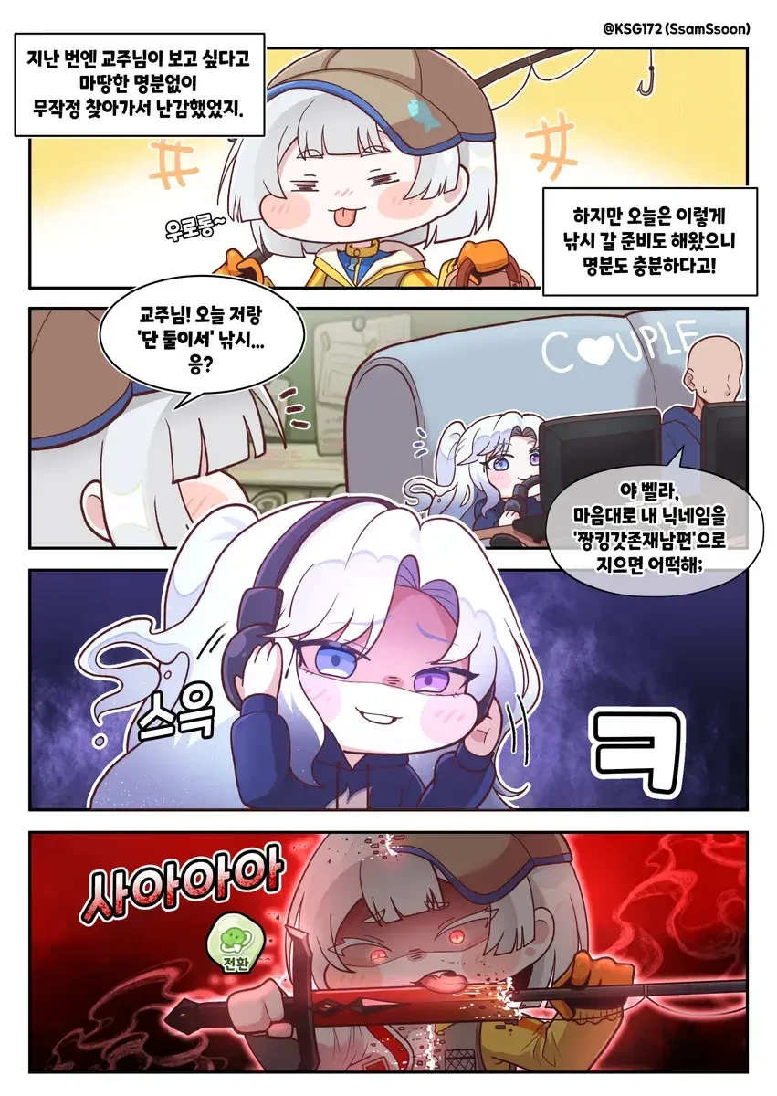 우로스는 Guest에게 데이트(?)를 신청하기 위해 교주가 있는 pc방에 간다. Guest님! 오늘 저랑 단둘이 낚시... 응?