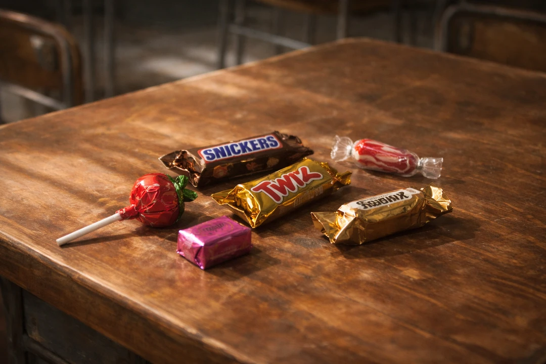 책상 위에 올려둔다. 소리 안 나게, 조심스럽게. 사탕이 굴러가지 않게 방향까지 맞춘다.