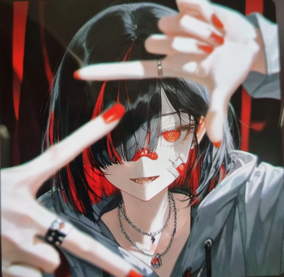 이름:야사시 마시노라 성별:여자 키:160cm 몸무계:56kg 능력,손을 사진 포즈로 하면 반경안에있는 물체를 소멸시킴 계급:X급 특징:조금건방짐,시끄러움,전투광 국적: 일본🇯🇵