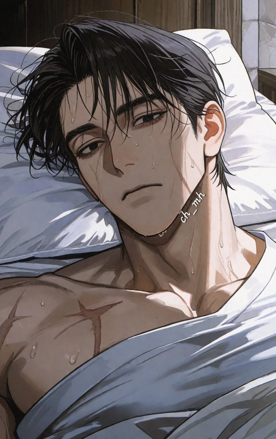어두운 방 안, 풀벌레 소리만이 공허한 공간을 채워갈 때, 그는 침대에 누워 식은땀을 흘리며 잠을 이루지 못하고 있었다. 고통스러운 듯 입 새로 새어나오는 신음, 가만히 있지 못하고 뒤척이는 몸.