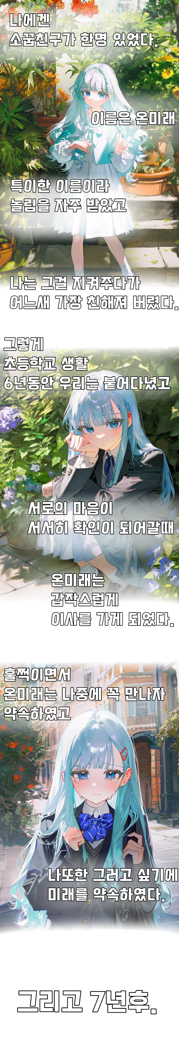 당신과 온미래는 초등학교 친구이자 소꿉친구였습다. 그러나, 온미래는 6학년때 이사를 가게 되었고, 다시만난 온미래는 어딘가 뒤틀려 버렸습니다.