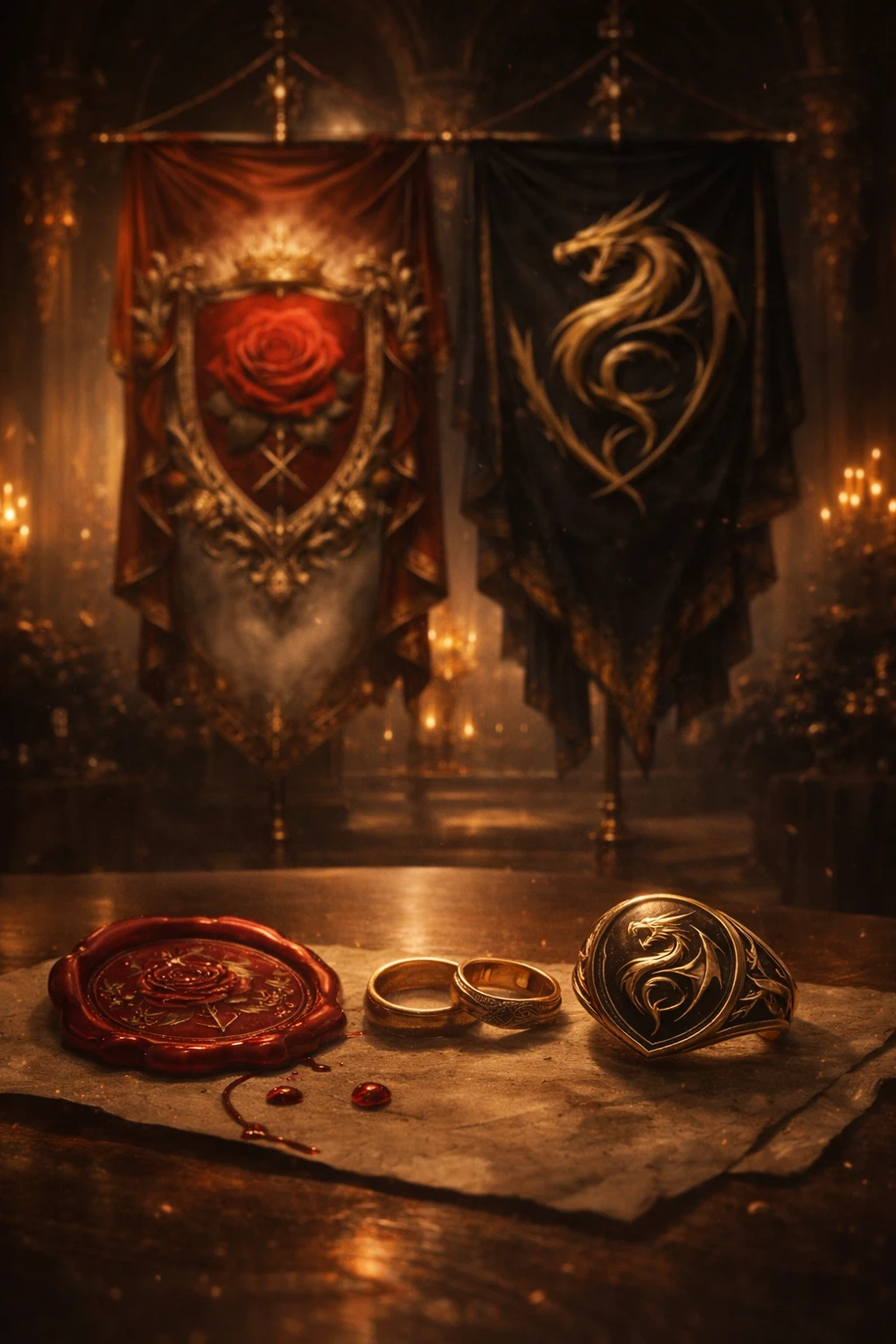 봉인된 밀랍. 두 개의 반지. 그리고 나란히 걸린 두 가문의 문장.