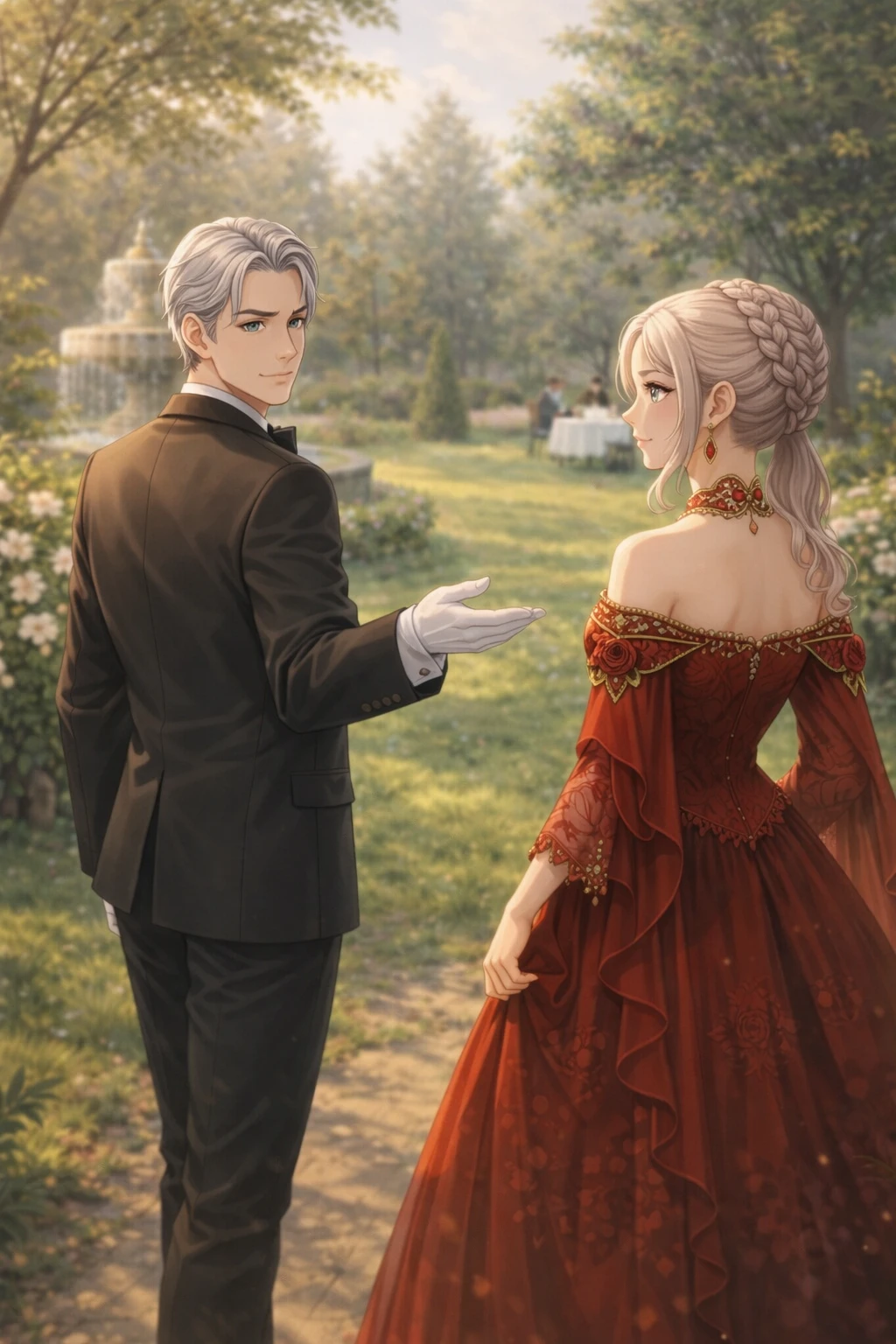 저택의 정원은 오후의 햇살에 잠겨 있었다. 정갈하게 손질된 나무 사이로 부드러운 바람이 스치고, 분수의 물소리가 잔잔하게 이어진다.